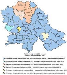 | Keywords: Vojvodina religion2002 map.png English Map of religions in Vojvodina - data by municipality 2002 census Serbian Mapa religija u Vojvodini - podaci po opštinama popis iz 2002 2009-02-09 own assumed PANONIAN References Popis stanovništva domaćinstava i stanova u 2002 Stanovništvo knjiga 3 Veroispovest maternji jezik i nacionalna ili etnička pripadnost prema starosti i polu - podaci po opštinama Republika Srbija - Republički zavod za statistiku Beograd maj 2003 Slobodan Radovanović Geografski atlas Magic Map Smederevska Palanka 2001 Source self made map Map was originally uploaded in English Wikipedia http //en wikipedia org/wiki/File Vojvodina_religion2002 png It was modified version of another map originally created by user PANONIAN Map was modified by user Livada and modified again by user PANONIAN Maps of religion in Serbia Maps of religion in Vojvodina Maps in Serbian |