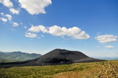 Keywords: volcano landscape view black ash lava clouds sky nature mountains outdoors