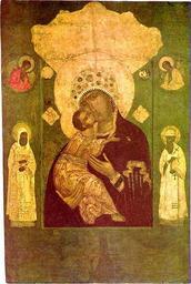 | Keywords: Volokolamskaya Vladimirskaya ikona.jpg Икона Бого одицы Волоколамская Владими ская Transferred from http //ru wikipedia org ru wikipedia<br/> Original text еп одукция иконы 1572 г <br/> 2005 09 20 original upload date author Original uploader was Nesusvet at http //ru wikipedia org ru wikipedia This image is in the public domain; PD-OLD; PD-ART PD-art original upload log page ru wikipedia Volokolamskaya_Vladimirskaya_ikona jpg 2005-09-20 07 44 Nesusvet 402×600× 79161 bytes <nowiki> азвание Икона Бого одицы Волоколамская Владими ская Описание Ц ИаР В емя создания 1572 г Лицензия PD </nowiki> Our Lady of Vladimir Icons in Andrey Rublev's museum |