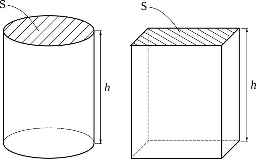 | Keywords: Volume cylindre parallelepipede rectangle.svg en Area of the base and height of a cylinder and of a cuboid for the calculation of its volume fr Aire de la base et hauteur d'un cylindre et d'un parallélépipède rectangle pour le calcul du volume own Cdang 2010-01-25 inkscape Cavalieri's principle |