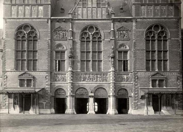Keywords: 4516 rijksmuseum amsterdam, voorgevel, arcadebogen, beeldhouwen rijksmuseumamsterdamvoorgevelarcadebogenbeeldhouwen haarlem nederland outdoor monochrome building architecture SFA022818278 Fotograaf onbekend Nederlands: Rijksmuseum Amsterdam, gelegen tussen de Stadhouderskade en het Museumplein. Start van de bouw 1876, voltooid in 1885. Architect P.J.H. Cuypers [1827-1921]. Voorgevel van het Rijksmuseum met beeldhouwwerk, arcadebogen en tegeltableaux. Foto 1918 English: Rijksmuseum Amsterdam, located between the Stadhouderskade and Museumplein. Start of construction 1876, completed in 1885. Architect P.J.H. Cuypers [1827-1921]. Facade of the Rijksmuseum with sculpture, arcades and tile tableaux. photo 1918 Hebt u meer informatie over deze foto, laat het ons weten. Laat een reactie achter (als u ingelogd bent bij Flickr) of stuur een mailtje naar: info@nationaalarchief.nl Please help us gain more knowledge on the content of our collection by simply adding a comment with information. If you do not wish to log in, you can write an e-mail to: info@nationaalarchief.nl Meer foto’s van het Nationaal Archief zijn te vinden in de fotocollectie op gahetna.nl: www.gahetna.nl/collectie/afbeeldingen/fotocollectie/ SFA022818278 Fotograaf onbekend Nederlands: Rijksmuseum Amsterdam, gelegen tussen de Stadhouderskade en het Museumplein. Start van de bouw 1876, voltooid in 1885. Architect P.J.H. Cuypers [1827-1921]. Voorgevel van het Rijksmuseum met beeldhouwwerk, arcadebogen en tegeltableaux. Foto 1918 English: Rijksmuseum Amsterdam, located between the Stadhouderskade and Museumplein. Start of construction 1876, completed in 1885. Architect P.J.H. Cuypers [1827-1921]. Facade of the Rijksmuseum with sculpture, arcades and tile tableaux. photo 1918 Hebt u meer informatie over deze foto, laat het ons weten. Laat een reactie achter (als u ingelogd bent bij Flickr) of stuur een mailtje naar: info@nationaalarchief.nl Please help us gain more knowledge on the content of our collection by simply adding a comment with information. If you do not wish to log in, you can write an e-mail to: info@nationaalarchief.nl Meer foto’s van het Nationaal Archief zijn te vinden in de fotocollectie op gahetna.nl: www.gahetna.nl/collectie/afbeeldingen/fotocollectie/