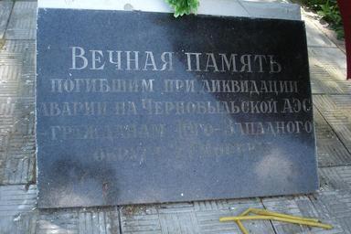 | Keywords: Vorontsovo manor Park. Monument dedicated to the liquidators of the Chernobyl accident. Detail.JPG Vorontsovo manor Park Monument dedicated to the liquidators of the Chernobyl accidentб citizens of South-Western Administrative Okrug Moscow May 2010 Detail of the monument Во онцовский па к усадьба «Во онцово» Поклонный к ест - памятник ликвидато ам ава ии на Че нобыльской АЭС - жителям Юго-Западного ок уга осквы Деталь памятника own 2010-05-13 Zac allan <span class signature-talk >talk</span> 50px Vorontsovo manor Park Monuments and memorials in Moscow Chernobyl disaster memorials Crosses in Russia PD-ineligible |