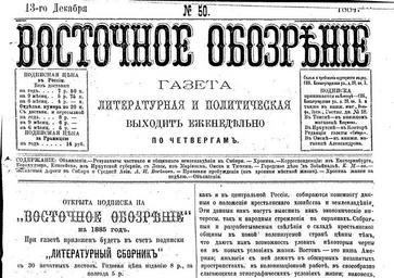 | Keywords: Vosstochnoe obozrenie.jpg ru Газета Восточное обоз ение Издавалась в И кутске И кутская го одская библиотека Редакция газеты Восточное обоз ение 1884-12-13 PD-old Newspapers of Russia 1884 13 December History of Irkutsk Media of Irkutsk Newspaper front pages Vostochnoye obozreniye |
