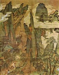 Keywords: Voyage de l'empereur Minghuang vers Shu détail 2.jpg fr Voyage de l'empereur Minghuang vers Shu par un artiste anonyme du XIe siècle d'après une composition du VIIIe siècle Détail d'un rouleau vertical encre et couleurs sur soie Collections du Musée du Palais “ Taichung Taïwan-Formose La peinture chinoise - Les trésors de l'Asie auteur James Cahill éditeur éditions Albert Skira Traducteur Yves Rivière Langue français Année 1960 pages 212 passage 28 anonymous century 11 PD-old Shan shui paintings in the National Palace Museum Emperor Xuanzong of Tang History of Imperial China Painters from China |