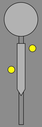 Keywords: Vr0 Nacht.svg Deutsches Form-Vorsignal bei Nacht Vr0 Zughalt erwarten Selbstgezeichnet nach der Beschreibung der Eisenbahn-Signalordnung Die ortsfesten Formvorsignale zeigen in der Regel eine um eine waagerechte Achse klappbare gelbe runde Scheibe mit schwarzem Ring und weißem Rand unter der sich zur Ankündigung des Signals Hp 2 ein beweglicher gelber schwarzgerahmter pfeilförmiger Flügel mit weißem Rand befinden kann Zwei gelbe Lichter nach rechts steigend given in the Eisenbahn-Signalordnung 2006-02-04 own assumed Qualle Diagrams of Vr semaphore signals |