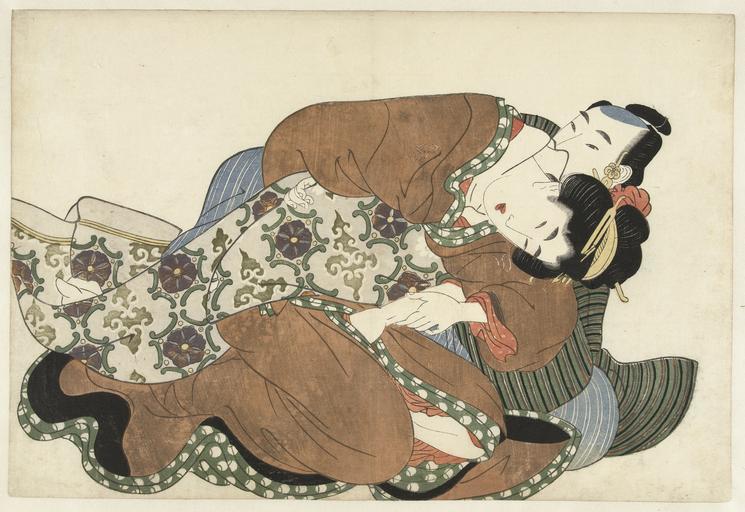 | Keywords: Vrijend paar-Rijksmuseum RP-P-2007-237.jpeg accession number RP-P-2007-237 Anonymous credit line nl Vrijend paar Man in gestreepte kimono reikt met zijn linker hand tussen de bruin-oranje en paars gebloemde kleding van de vrouw Label Line attributed to Kikugawa Eizan 1787 - 1867 ca 1810 kleurenhoutsnede; lijnblok in zwart met kleurblokken Collection prenten; Japan collectie blad Height mm 265 blad Width mm 392 exhibition history Institution Rijksmuseum paper object history Acquisition 2007 object type prent PD-US PD-old-100 Data and photography rights All data and all images made available through the API are either in the public domain or are subject to a CC0 license https //www rijksmuseum nl/en/api/terms-and-conditions-of-use cc-zero place of creation Japan http //www rijksmuseum nl/collectie/RP-P-2007-237 http //hdl handle net/10934/RM0001 COLLECT 440935 handle Vrijend paar Uploaded with GWToolset Rijksmuseum RP-P-2007-237 http //www rijksmuseum nl/media/assets/RP-P-2007-237 Images uploaded by Fæ Images from the Rijksmuseum Japanese 19th-century prints in the Rijksmuseum Amsterdam |