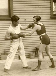 Keywords: 4410-8 44108 haarlem nederland boxing boksen vrouwen women female boxer femaleboxer world champion worldchampion louise adler louiseadler joe rivers joerivers 1926 woman monochrome Spaarnestad Photo, SFA003001706 De vrouwelijke wereldkampioene boksen in het lichtgewicht Louise Adler traint met de prijsvechter Joe Rivers voor de wedstrijd waarin zij haar titel zal verdedigen, Verenigde staten 1926. The woman lightweight world champion boxing Louise Adler training with the prize fighter Joe Rivers for the match in which she will defend her title, United States 1926. Spaarnestad Photo, SFA003001706 De vrouwelijke wereldkampioene boksen in het lichtgewicht Louise Adler traint met de prijsvechter Joe Rivers voor de wedstrijd waarin zij haar titel zal verdedigen, Verenigde staten 1926. The woman lightweight world champion boxing Louise Adler training with the prize fighter Joe Rivers for the match in which she will defend her title, United States 1926. |