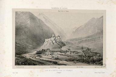 Keywords: Vue de la petite ville de Vénasque - Espagne - Fonds Ancely - B315556101 A PETIT 1 028.jpg Fait partie d'un recueil de 30 lithographies chiffrées de 1 à 30 La lithographie n°16 est sur double page il n'y a pas de lithographie chiffrée 17 Les planches du premier tirage de cette suite imprimées chez Thierry à Paris ont été publiées en 1854 et 1855 L'éditeur de Victor Petit n'est plus celui des précédents recueils Bassy à Pau mais Dulon libraire-éditeur à Bagnères-de-Luchon et à Saintes Dulon publiera ultérieurement à plusieurs reprises des recueils de vues de Luchon et autres sites des Pyrénées par Victor Petit dont la composition est très variable Les planches ne seront plus tirées chez Thierry mais par l'imprimerie J Monrocq à Paris Pièce jointe entre la pl 6 et la pl 7 une pl extraite de Les Pyrénées a été ajoutée Sa légende est la suivante Cirque de Gavarnie - Vue prise du Chemin de la Coumélie Cette planche a été éditée par Dulon mais a été imprimée chez J Monrocq à Paris Ancely René 1876 - 1966 Possesseur fre public domain domaine public B315556101_A_PETIT_1_028 jpg image/jpeg 1 f de pl lithogr ; 26 5 cm oblong Dulon Éditeur Thierry 17 -18 ; imprimeur-lithographe Imprimeur http //numerique bibliotheque toulouse fr/collect/general/index/assoc//ark /74899/B315556101_A_PETIT_1_028 dir/B315556101_A_PETIT_1_028 jpg Bibliothèque municipale de Toulouse A-PETIT 1-27 Creator Victor Jean-Baptiste Petit http //catalogues toulouse fr/web2/tramp2 exe/do_keyword_search/log_in setting_key BMT1 servers 1home query p001940 vignette http //numerique bibliotheque toulouse fr/collect/general/index/assoc//ark /74899/B315556101_A_PETIT_1_028 dir/B315556101_A_PETIT_1_028_thumb jpeg century 19 Vue de la petite ville de Vénasque - Espagne B315556101_A_PETIT_1_028 lithography - print Women in art Castles in art Ramparts Victor Jean-Baptiste Petit Castles in the province of Huesca History of Pyrénées Benasque Bridges in art Towers in art Churches in art Mounds Bell towers in art Mountains in art Roads in art Men in art Houses in art Rivers in art Esera River |