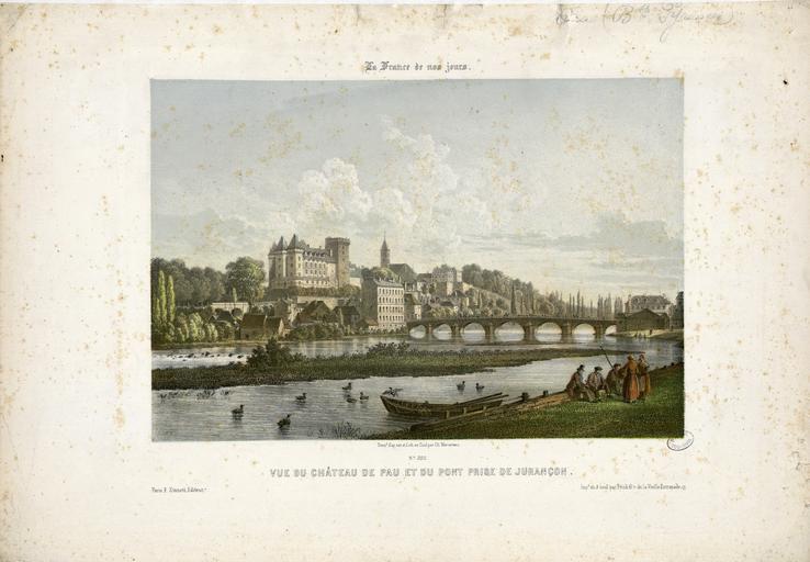 Keywords: Vue du Château de Pau et du Pont prise de Jurançon - Fonds Ancely - B315556101 A MERCEREAU 7 064.jpg Impression en 3 coul par Frick frères à Paris Fait partie d'un ensemble de recueils de lithographies de Mercereau composés de lithographies provenant de La France de nos jours vaste suite publiée par livraisons de 1853 à 1876 et comprenant 475 planches en deux tirages l'un à deux teintes noir et bistre l'autre en couleurs Les libraires ont réuni ces planches en albums de composition variable quant au nombre de planches et aux dessinateurs Asselineau Mercereau Maurice Deroy etc Un titre Les Pyrénées par Ch Mercereau; Bagnères-de-Luchon par Ch Mercereau était frappé sur le plat supérieur de la reliure de l'album ainsi que le nom du Libraire pour lequel il était réalisé La plupart des recueils de ces planches pyrénéennes portent le nom de Sajous libraire à Bagnères-de-Luchon Pl 1 à 18 numérotées de 370 à 386 Pl 374 pl 5 et 6 en double -- Pl 19 20 et 21 numérotées respectivement 407 415 et 418 Ces trois pl ont été dessinées et lithographiées par Asselineau -- Pl 22 23 et 24 numérotées 438 439 et 440 -- Pl 22 lith par Aubrun -- Pl 25 numérotée 441 -- Pl 26 à 40 numérotées de 327 à 341 -- Pl 41 à 46 numérotées de 363 à 368 -- Pl 47 numérotée 369 -- Pl 48 num 292 -- Pl 49 et 50 num 264 et 265 -- Pl 51 et 52 num 268 et 269 -- Pl 53 à 55 num de 293 à 295 -- Pl 56 num 300 -- Pl 57 à 59 num de 307 à 309 -- Pl 60 à 70 num de 316 à 326 -- Pl 71 num 63 dessin et lith d'Asselineau imprimerie Destouches -- Pl 72 et 73 num 87 et 88 dessin et lith d'Asselineau imprimerie Destouches -- Pl 74 num 124 signée Lebreton éditée chez Lalonde à Paris et imprimée chez Becquet frères à Paris -- Pl 75 num 161 dessin et litho d'Asselineau imprimerie Destouches --Pl 76 à 78 num de 207 à 209 -- Pl 79 à 81 num de 211 à 213 -- Pl 82 num 220 dessin et lith de Maurice imprimerie Destouches -- Pl 83 à 86 num de 226 à 229 -- Pl 87 et 88 num 234 et 235 -- Pl 89 à 91 num de 273 à 275 -- Pl 92 et 93 num 290 et 291 Pièces jointes 6 pl sépia dont certaines sont des doubles du recueil de Mercereau Les cinq premières planches sont numérotées respectivement 318 321 324 331 386 La dernière planche n'est pas extraite de La France de nos jours mais de L'Espagne pittoresque et monumentale Ces six planches sont signées Mercereau éditées chez Sinnet et imprimées chez Frick frères Ancely René 1876 - 1966 Possesseur fre public domain domaine public B315556101_A_MERCEREAU_7_064 jpg image/jpeg 1 f de pl lithogr ; 31 cm oblong Frick frères Imprimeur Sinnet F Éditeur http //numerique bibliotheque toulouse fr/collect/general/index/assoc//ark /74899/B315556101_A_MERCEREAU_7_064 dir/B315556101_A_MERCEREAU_7_064 jpg Bibliothèque municipale de Toulouse A-MERCEREAU 7-64 Creator Charles Mercereau http //catalogues toulouse fr/web2/tramp2 exe/do_keyword_search/log_in setting_key BMT1 servers 1home query p001688 St Jean-de-Luz intérieur de l'Eglise St Jean-de-Luz le Château de l'Infante Biarritz Vue générale prise du Phare Château de Mauvesin près Bagnères-de-Bigorre Hautes Pyrénées Bagnères de Bigorre Hautes Pyrénées - Intérieur de l'Eglise des Carmes en couleurs Bagnères de Bigorre Hautes Pyrénées - Intérieur de l'Eglise des Carmes Bagnères-de-Bigorre - Eglise et couvent des Carmes Bagnères-de-Bigorre Hautes-Pyrénées - Tour des Jacobins Cascade et Pont de Magenta Vallée de l'Esponne Hautes Pyrénées Cascade de Trémes-Aïgues Vallée de Grip Hautes Pyrénées St Sauveur Hautes Pyrénées - Le Pont Napoléon Bayonne - Eglise St André Arreau et la Vallée d'Aure Hautes Pyrénées - Vue prise au dessus de la route du Col d'Aspin Auch - Vue prise sur les bords du Gers Auch - Vue de la Cathédrale Auch - Intérieur de la Cathédrale Bagnères-de-Bigorre - Vue Générale prise de la Fontaine ferrugineuse Eaux-Bonnes Basses-Pyrénées - L'établissement Thermal et la Chapelle Nantes - Vue de l'Eglise Ste Croix Le Croisic - Plage des Baigneurs et Etablissement de Bains Le Folgoët - Vue de l'Eglise Brèche de Roland prise de Gèdres Hautes Pyrénées Eglise des Templiers à Luz Chapelle du couvent de Pouëlahun i e Pouey Lahun - Vallée d'Azun Hautes Pyrénées Le Pont de Scia - Route de Luz à Gavarnie Hautes-Pyrénées Vue de l'établissement de la Raillière près Cauterets Hautes-Pyrénées Vue générale de Cauterets prise du Mamelon Vert Hautes-Pyrénées Vue du Fort de Lourdes Hautes-Pyrénées Vue d'Argelès-de-Bigorre Hautes-Pyrénées Vue de St Sauveur Hautes-Pyrénées Le Pas de l'Echelle Route de Gavarnie Hautes-Pyrénées Fond de la Vallée d'Argelès prise de la terrasse de St Savin Hautes-Pyrénées Place Grammont à Pau Basses-Pyrénées Vue générale des Eaux-Bonnes Basses-Pyrénées Barèges et la Vallée du Bastan Hautes-Pyrénées Chute supérieure du Pont d'Espagne Hautes-Pyrénées La grotte miraculeuse à Lourdes Hautes-Pyrénées Eglise de Bétharram et Pont de Lestelle Basses Pyrénées Cascade du Cerizet Près Cauterets Hautes-Pyrénées Pic du Midi d'Ossau 2885m Basses Pyrénées - Vue prise du 3e plateau de Bious-Artigues Toulouse - Cloître du Musée et Clocher des Augustins Pau - Vue prise de la terrasse du Château Pau - Vue du Château prise du Parc Toulouse - Cloître du Musée Galerie du Moyen-Age Toulouse - La maison de pierre fragment de la façade Toulouse - Intérieur de St Sernin St Jean-de-Luz Fort du Socoa Toulouse - Vue du Capitole Bordeaux Vue de la Porte du Caillau i e Cailhau Bordeaux Porte de la grosse Cloche Bordeaux Vue des Quinconces Bordeaux - Vue de la Tour et de l'Eglise de St Michel Toulouse - Vue du Pont de pierre prise du Quai de Brienne Toulouse - Abside de l'Eglise de St Sernin de l'an 1097 Toulouse - Choeur de la Cathédrale St Etienne Rouen - Hôtel de Bourgtheroulde Biarritz - Vue des Bains Napoléon et du Casino Biarritz - Vue des Bains du Port Vieux Biarritz - Vue de l'Entrée de la Vi