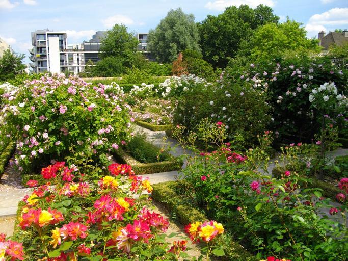 Keywords: Vue du jardin avec roses.JPG en Garden with roses fr Jardin avec roses own Dinkum 2009 Cc-zero Roseraie de Bercy