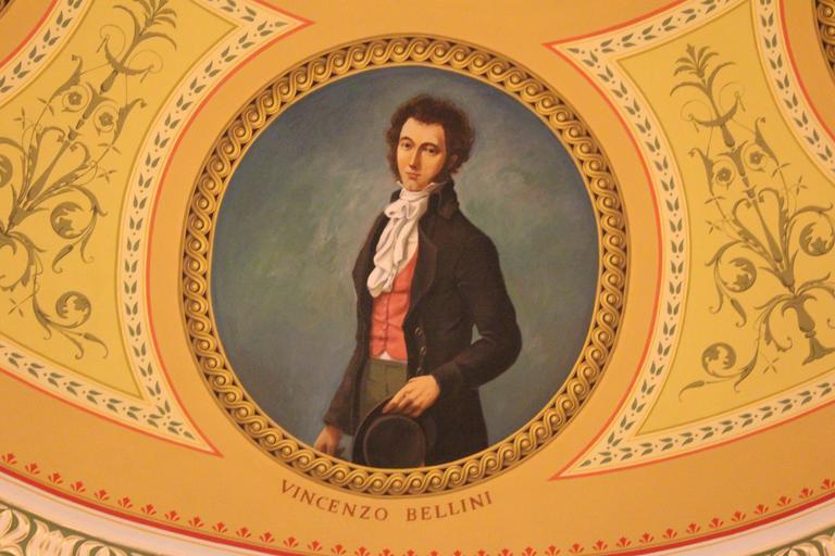 Keywords: Vuncenzo Bellini.JPG en Painting at the Ceiling of the Apollon Theater in Ermoupolis 2015-04-24 16 01 41 own Zacharias Mitzelos other versions cc-zero Uploaded with UploadWizard Apollon Theatre Syros