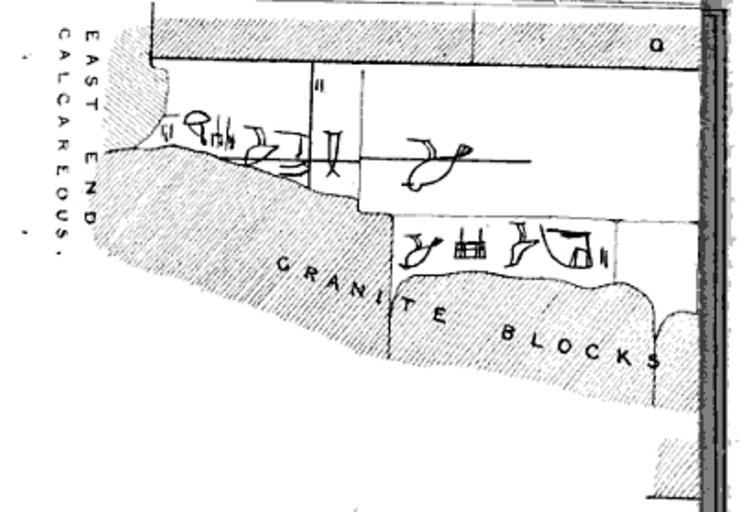 Keywords: Vyse-perring-01.jpg de Bauarbeiterinschriften aus den Entlastungskammern der Cheops-Pyramide hier aus der Lady Arbuthnot-Kammer Richard William Howard Vyse John Shae Perring Operations carried on at the pyramids of Gizeh in 1837 with an account of a voyage into Upper Egypt and an appendix 1940 p 278 Richard William Howard Vyse John Shae Perring 1840 PD-old-100 Interior of the Great Pyramid Apr symbol hieroglyph Warp between uprights hieroglyph |