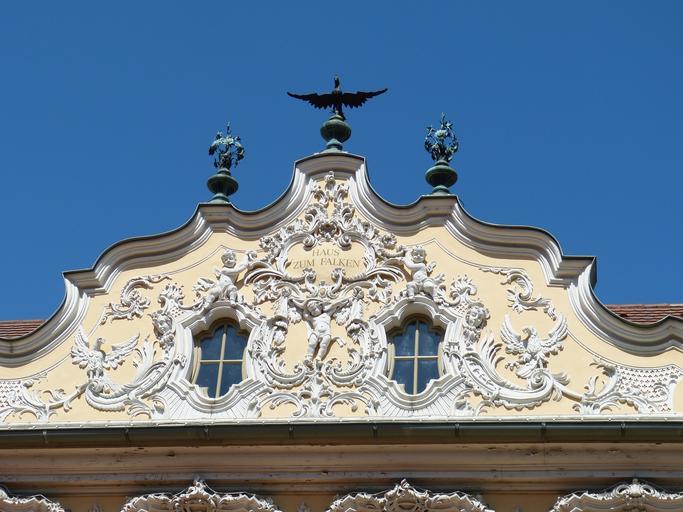 Keywords: würzburg bavaria swiss francs historically building facade old town places of interest market hawks gable home architecture fig relief