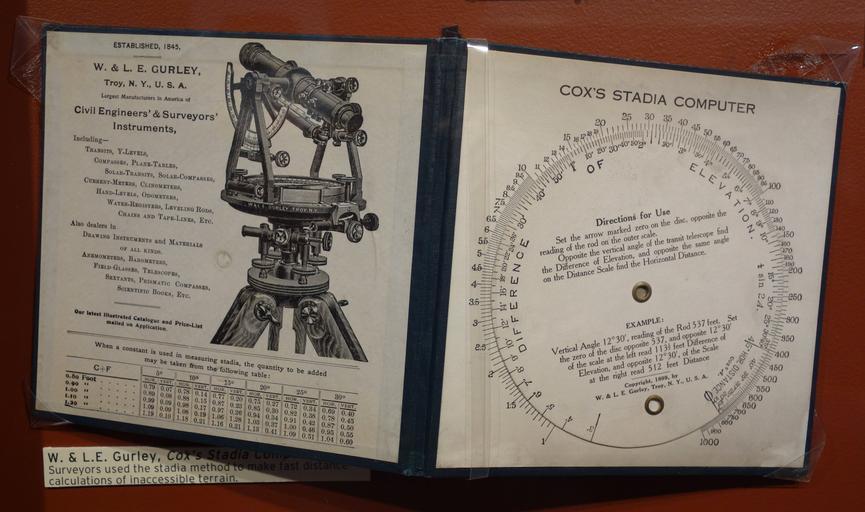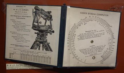 Keywords: W. & L.E. Gurley, Cox's Stadia Computer - MIT Slide Rule Collection - DSC03649.JPG en MIT Slide Rule Collection MIT Museum Cambridge Massachusetts USA The museum permitted photography without restriction 2013-08-04 13 38 08 own Daderot cc-zero MIT Slide Rule Collection Uploaded with UploadWizard |