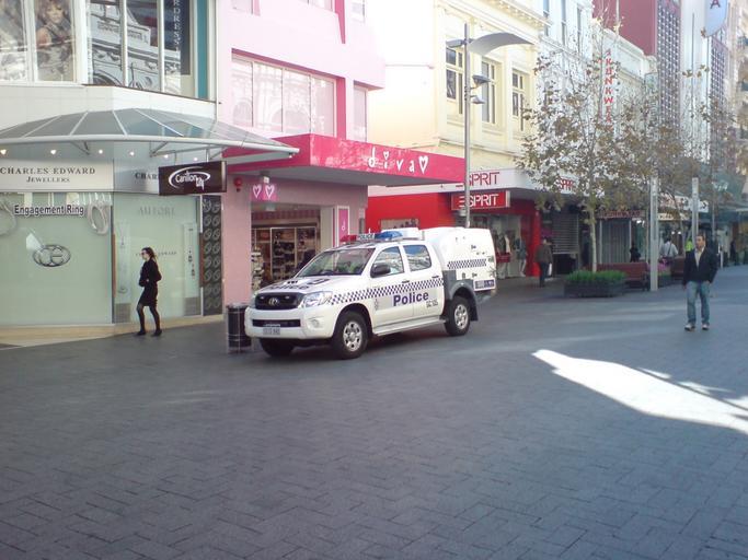 | Keywords: WA Police caged vehicle in Perth CBD.jpg A caged WA Police vehicle in Perth Australia self-photographed 2010 Uploader Photos taken by Ingolfson 2010 in Australia Perth CBD Police vans of Australia Western Australia Police Shops in Perth Western Australia |