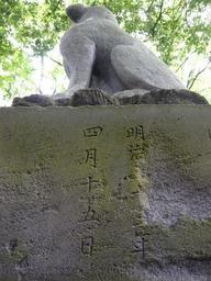 Keywords: Wada-inari-jinja3 date.jpg Wada Inari-jinja 和田稲荷神社(わだ いなり じんじゃ) の狐像台石に刻まれた 制 ・奉納年 日 明治三十三年 四 十五日 own 2010-05-13 tokorokoko <gallery align right> File Wada-inari-jinja5 relief jpg File Wada-inari-jinja6 shirakashi jpg </gallery> Wada Inari-jinja Shakujii Nerima |