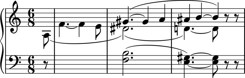 | Keywords: Wagner Tristan opening.svg s2 gis4 ~ gis4 a8 ais8 b4~ b8 \oneVoice r r B \relative c' \voiceTwo a8 f'4 ~ f4 e8 dis2 d 4 ~ d8 s s C \relative c \clef bass r8 R1 6/8 <f b>2 <e gis>4 ~ <e gis>8 r r \score \new PianoStaff << \new Staff << \new Voice \A \new Voice \B >> \new Staff \C >> \layout indent 0 0\mm ragged-right t </pre> 2015-12-09 File Wagner Tristan opening png Music Richard Wagner <br> Original PNG image wikipedia User Camembert other versions Custom license marker 2015 12 09 Uploaded with UploadWizard Sheet music of Richard Wagner Tristan chords |