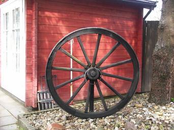 Keywords: wagon wheel spokes farmhouse antique wood wooden wheel wheel red hut