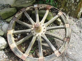 Keywords: wagon wheel wood iron companions wooden wheel means of transport antique