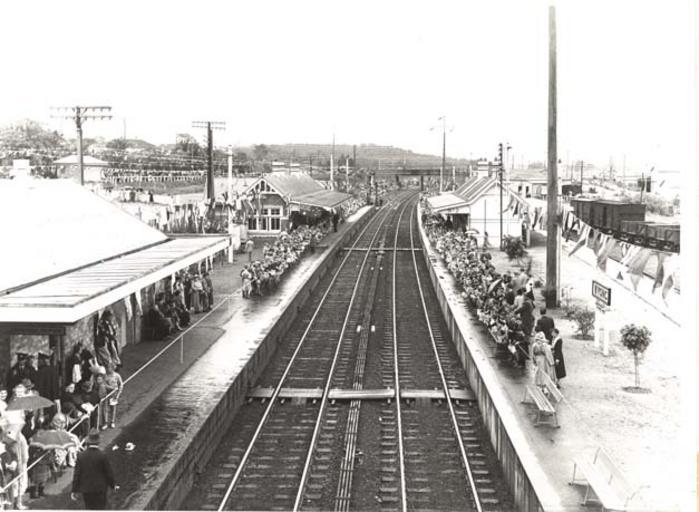 Keywords: archives state records nsw staterecordsnsw newsouthwales blackandwhite spectators people platform railwaytracks railwaystation crowds wyong central coast centralcoast royal visits royalvisits geotagged geo:lon=-33.286 geo:lon=33286 geo:lat=151.4252 geo:lat=1514252 road sport architecture infrastructure building building structure outdoor black and white Crowds awaiting the arrival of Queen Elizabeth II onboard the royal train at Wyong Railway Station Dated: 9 February 1954 Digital ID: 17420_a014_a014000166 Rights: www.records.nsw.gov.au/about-us/rights-and-permissions We'd love to hear from you if you use our photos. Many other photos in our collection are available to view and browse on our website using Photo Investigator. Crowds awaiting the arrival of Queen Elizabeth II onboard the royal train at Wyong Railway Station Dated: 9 February 1954 Digital ID: 17420_a014_a014000166 Rights: www.records.nsw.gov.au/about-us/rights-and-permissions We'd love to hear from you if you use our photos. Many other photos in our collection are available to view and browse on our website using Photo Investigator. |