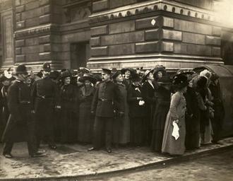 Keywords: the women's library thewomenslibrary women suffrage politics hires monochrome 7JCC/O/02/054 Photograph, printed, paper, monochrome, a large group of women being controlled by police waiting outside Bow Street Magistrates' Court for women to be released; printed inscription on reverse 'Copyright. Newspaper Illustrations Limited. 161A Strand' 7JCC/O/02/054 Photograph, printed, paper, monochrome, a large group of women being controlled by police waiting outside Bow Street Magistrates' Court for women to be released; printed inscription on reverse 'Copyright. Newspaper Illustrations Limited. 161A Strand' |