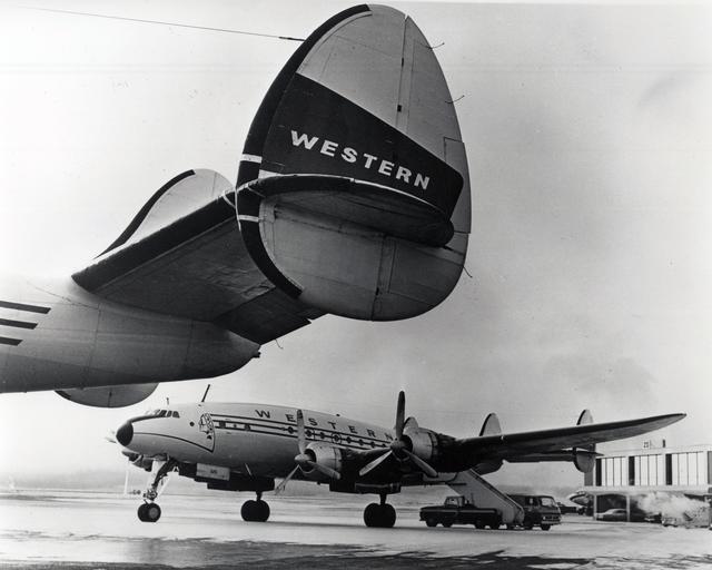 Keywords: western airlines westernairlines lockheed constellation lockheedconstellation constellation lockheed aircraft vehicle outdoor blackandwhite airplane black and white Western Airlines "The Only Way to Fly" Lockheed Constellation. The back of this photo says it was taken In 1955. I know that Western acquired some Constellations when they merged with Pacific Northern Airlines (PNA) in 1967. I don't think Western operated their own Constellations prior to that. I will have to do some research on this. There is a Boring jet peaking out around the corner of the terminal and the ramp is snow covered. Also the vehicles on the ramp look newer than the 1950s. This causes me to believe that this was a Constellation acquired from PNA in the 60s. The ramp at Anchorage Alaska would be my guess. I flew with some PNA guys at Western. They told me some pretty wild stories about operating the Constellation into places like Kodiak Alaska. NOT my photo. Western Airlines "The Only Way to Fly" Lockheed Constellation. The back of this photo says it was taken In 1955. I know that Western acquired some Constellations when they merged with Pacific Northern Airlines (PNA) in 1967. I don't think Western operated their own Constellations prior to that. I will have to do some research on this. There is a Boring jet peaking out around the corner of the terminal and the ramp is snow covered. Also the vehicles on the ramp look newer than the 1950s. This causes me to believe that this was a Constellation acquired from PNA in the 60s. The ramp at Anchorage Alaska would be my guess. I flew with some PNA guys at Western. They told me some pretty wild stories about operating the Constellation into places like Kodiak Alaska. NOT my photo. |