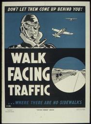 Keywords: "WALK FACING TRAFFIC, WHERE THERE ARE NO SIDEWALKS" - NARA - 516012.jpg Scope and content General notes 516012 Local identifier 44-PA-2289 Office for Emergency Management Office of War Information Domestic Operations Branch Bureau of Special Services 03/09/1943 - 09/15/1945 Still Picture Records Section Special Media Archives Services Division NWCS-S National Archives at College Park 8601 Adelphi Road College Park MD 20740-6001 1941 - 1945 Record group Record Group 44 Records of the Office of Government Reports 1932 - 1947 Record group ARC 373 World War II Posters compiled 1942 - 1945 Series ARC 513498 File unit File unit ARC Variant control numbers NAIL Control Number NWDNS-44-PA-2289 Other versions <gallery> File WALK_FACING_TRAFFIC _WHERE_THERE_ARE_NO_SIDEWALKS _-_NARA_-_516012 tif tif File WALK_FACING_TRAFFIC _WHERE_THERE_ARE_NO_SIDEWALKS _-_NARA_-_516012 jpg jpg </gallery> NARA-cooperation PD-USGov 1940s works in the United States Pedestrians in the United States Safety posters Pedestrian safety World War II posters from the United States |