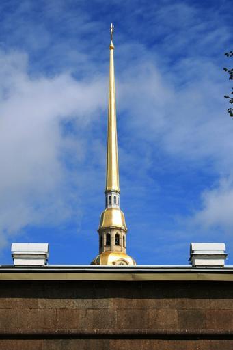 Keywords: wall brown strong granite fortress bell tower spire gold building cathedral architecture sky blue