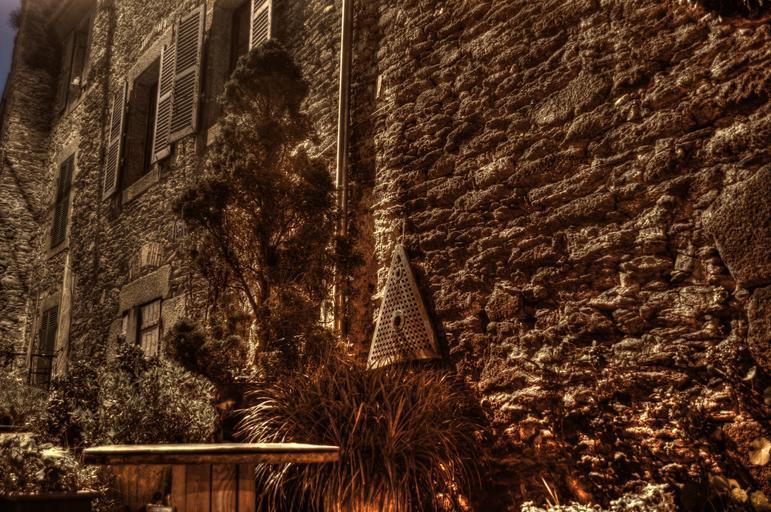 Keywords: wall facade bricks stones old former night light