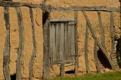 Keywords: wall timber-framed wood bar door expired clay old structure