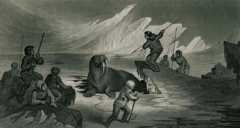 | Keywords: Walrus hunting.jpg Plate entitled Walrus Hunting from Elisha Kent Kane's Arctic Explorations 2nd Grinnell published in Philadelphia in 1856 1856 Based on a sketch by Dr Kane Kane died in 1857 and the book was printed in 1856 so the image is PD worldwide PD image no restrictions PD-old Greenland in the 1850s People of Greenland in art Hunting in Greenland Male fur clothing in art Inuit food Elisha Kane Icebergs in art | ||||