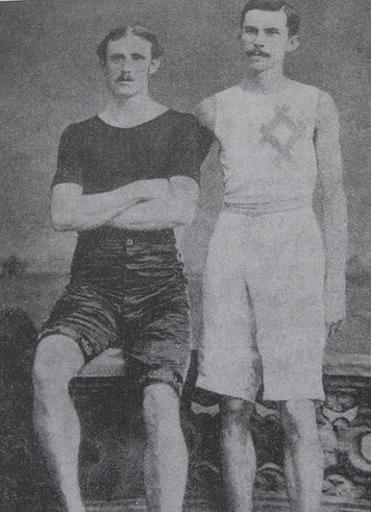 Keywords: Walter George - Lon Myers.jpg fr Laurence Myers à droite athlète américain né le 16 février 1858 et mort le 15 février 1899 spécialiste de nombreuses disciplines du 50 yd au mile Au côté de Walter George http //www alfieshrubb ca/index php/photo_album/image_full/377/ author Pd-old Lon Myers
