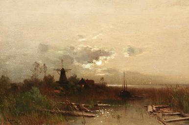 Keywords: Walter Moras - Abendfrieden, Auenlandschaft mit Windmühle im Mondenschein.jpg Artwork Creator Walter Moras oil canvas cm 37 52 object history credit line accession number http //www walter-moras de/home htm PD-old-auto 1925 Landscape paintings Paintings of windmills Walter Moras |