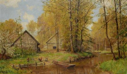 View Original:Walter_Moras_-_Häuser_an_einem_Spreewaldkanal.jpg (3448x2012)