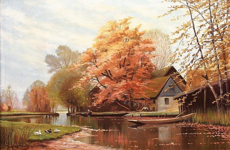 Keywords: Walter Moras - Spreewald-Idyll mit Kanal und Haus, Personen, Enten und Booten.jpg Artwork H Mohrmann Pseudonym von Walter Moras Variation eines Werks von Walter Moras Creator Walter Moras oil canvas cm 50 70 object history credit line accession number http //www lot-tissimo com/de/i/2610089 similar to 200px 200px 200px PD-old-auto 1925 Walter Moras Autumn landscape paintings Spreewald in art |