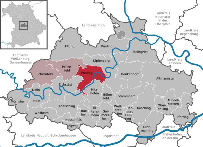 | Keywords: Walting in EI.svg DeLocMaps Walting Landkreis Eichstätt District of Eichstätt Eichstätt district L'arrondissement d'Eichstätt Arrondissement d'Eichstätt Bayern Bavière Bavaria Adobe Illustrator <br/> own based on <br/> File Municipalities_in_Bavaria svg by TUBS 2010-05-11 Hagar66 based on work of TUBS Hagar66/licensesection Attribution TUBS/Credits Locator maps of municipalities in Landkreis Eichstätt Walting | ||||