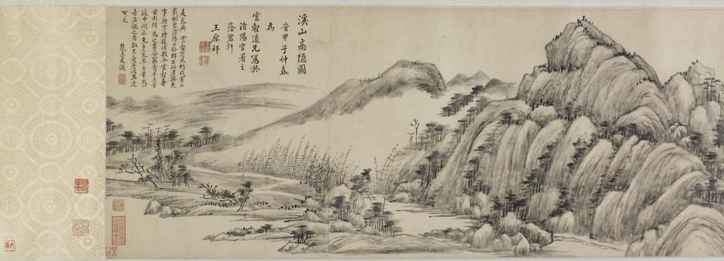 Keywords: Wang Yuanqi -Wang Yuan-ch'i- - Free Spirits Among Streams and Mountains - Walters 35198 - View J.jpg When he painted this long handscroll in 1684 Wang Yuanqi Wang Yüan-ch'i the greatest orthodox master of the Qing Ch'ing dynasty had not yet developed the style for which he is best remembered Grounded in the lessons of his grandfather the artist Wang Shimin Wang Shih-min he aimed in his own way to make a work both as weighty and as free as that which was regarded as the greatest of Chinese handscrolls Huang Gongwang's Huang Kung-wang's Dwelling in the Fuchun Fu-ch'un Mountains of 1350 1684 ink paper H 13 x L 279 7/8 in 33 x 710 9 cm accession number 35 198 3491 James Freeman date and mode of acquisition unknown Walters Art Museum 1994 by purchase Museum purchase with funds provided by the W Alton Jones Foundation Acquisition Fund 1994 Free Spirits among Streams and Mountains A Chinese Handscroll by Wang Yuan-ch'i 1645-1715 The Walters Art Gallery Baltimore 1996 place of origin China Walters Art Museum license 2D Free Spirits Among Streams and Mountains Wang Yuanqi |