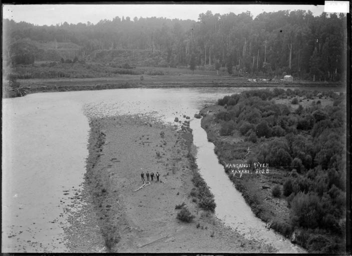 | Keywords: blackandwhite monochrome outdoor photo border black and white Wanganui River at Kakahi, circa 1908, with a stand of native bush in the background, and four men standing on a piece of land which has the main river on the left and a narrow channel of the river on the right. Photograph taken by William Archer Price. Inscriptions: Inscribed - Photographer's title on negative -bottom right: Wanganui River. Kakahi [No.] 862B. Quantity: 1 b&w original negative(s). Physical Description: Dry Plate glass negative Wanganui River at Kakahi. Price, William Archer, 1866-1948 :Collection of post card negatives. Ref: 1/2-000855-G. Alexander Turnbull Library, Wellington, New Zealand. natlib.govt.nz/records/22317838 Wanganui River at Kakahi, circa 1908, with a stand of native bush in the background, and four men standing on a piece of land which has the main river on the left and a narrow channel of the river on the right. Photograph taken by William Archer Price. Inscriptions: Inscribed - Photographer's title on negative -bottom right: Wanganui River. Kakahi [No.] 862B. Quantity: 1 b&w original negative(s). Physical Description: Dry Plate glass negative Wanganui River at Kakahi. Price, William Archer, 1866-1948 :Collection of post card negatives. Ref: 1/2-000855-G. Alexander Turnbull Library, Wellington, New Zealand. natlib.govt.nz/records/22317838 |