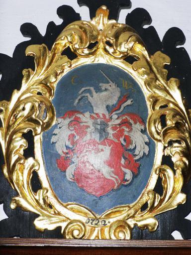 Keywords: Wappen14.JPG Eines der vielen Wappen der Kirchenspender in der Dreieinigkeitskirche in Buxach aus dem 18 Jahrhundert Monongramm C W Jahreszahl auf dem Rahmen 1722 Wappen in rot ein steigendes silbernes Einhorn Helmzier ein aufwachsendes silbernes Einhorn own 2008-06-14 User Memmingen Dreieinigkeitskirche Buxach Paintings of coats of arms Coats of arms to be classified Coats of arms of families of Germany - W Unicorns in coats of arms of families of Germany Unicorns in crest Unicorns salient in heraldry Coats of arms in Memmingen |