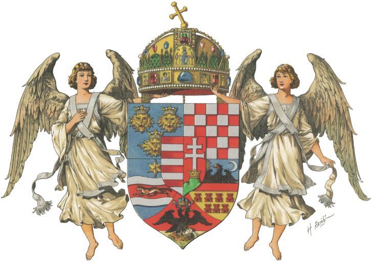 Keywords: Wappen Ungarische Länder 1867 (Mittel).png blazon of de Mittleres Wappen der Ungarischen Länder Österreich-Ungarns aus dem Jahre 1867 “1915 en Coat of Arms of the Archduchy of Austria with crest and helmet de In ersten Feld die Leopardenköpfe für das Königreich Dalmatien im zweiten geschacht für das Königreich Kroatien im dritten Feld der Marder Slawoniens im vierten Adler Sonne Mond und Burgen Siebenbürgens im Propf der zweiköpfige Adler für Fiume Der Mittelschild gespalten von Altungarn und Neuungarn für das Königreich Ungarn à ber dem Schild schwebt von zwei Engeln gehalten die Stephanskrone Erläuterung Huge Gerhard Ströhls zur Abbildung Das ungarische Staatswappen hat in seiner Zusammsetzung und Durchbildung schon vielfache Wandlungen durchgemacht so dass man am Ende nicht mehr wusste welcher Aufriss eigentlich der richtige sei Bei der Bearbeitung unserer ersten Auflage der Wappenrolle welche im Laufe des Jahres 1889 gezeichnet wurde hielten wir uns selbstverständlich an jene Darstellungsweise welche wir in ungarischen heraldischen Publicationen über diesen Gegenstand vorfanden Unsere Rolle war bereits bis auf wenige Exemplare vergriffen als die Publication <P> Magyarország czimere a m kir miniszterelnökség à ltal hitelesitett szÃnnyomatu czimerképekkel; irta Futtaky Gyula Budapest 1891 <P> erschien versehen mit folgendem Atteste der ungarischen Regierung <P> 243/M E <P> A fentebb látható czimerrajzok a magy kir Miniszterelnökségnél megvizsgáltatván ugy az elrendezés mint a részletekre nézve helyeseknek talaltattak Budapesten I891 évà fébruar hó 23-án <P> A miniszterelnök helyett <P> Tarkovich s k <P> államtitkár <P> Z D »Die oben zu sehenden Wappenbilder wurden bei dem königlichen ungarischen Ministerpräsidium geprüft und sowohl hinsichtlich der Anordnung wie bezüglich der Details für richtig befunden « <P> Wenn man die beiden Tafeln der alten und neuen Auflage vergleicht wird man nur sehr geringe Abweichungen bemerken Das von der Regierung begutachtete Wappen zeigt im Balkenschilde den ersten Balken roth während in der alten Darstellung mit Silber begonnen wurde Der Mond im Wappen von Siebenbürgen ist einwärts gekehrt während er früher nach außen sich richtete An Stelle der purpurrothen Farbe des unteren Zwickelfeldes Fiume trat das auch heraldisch richtigere Zinnoberroth Der Doppeladler welcher früher in Naturfarbe erschien hat eine schwarze Tinctur erhalten nur die blau gefütterte Krone haben wir in ihrer Stellung gelassen während die Futtaky schrägrechts geneigt über den Adlerköpfen schweben lässt Diese Stellung obwohl im Stadtsiegel von Fiume vorhanden ist nicht nur unheraldisch sondern auch im höchsten Grade unschön Der dem großen Schilde des ungarischen Staatswappens aufgelegte Herzschild ist gespalten und zeigt rechts das altungarische links das neu-ungarische Wappenbild Der Rückenschild ist geviertet ein fünftes Feld ist unten žeingepfropft Im ersten Felde oben rechts erscheint Dalmatien links Kroatien; unten rechts Slavonien links Siebe nbürgen in der Spitze Fiume mit Gebiet Wir kommen bei der Besprechung der einzelnen Länderwappen der ungarischen Krone Tafel XI noch auf diese Wappen zurück Die St Stephanskrone ist aus zwei Kronen zusammengesetzt aus der sogenannten lateinischen und der byzantinischen oder griechischen Krone Erstere von welcher nur die zwei sich kreuzenden Bügel und die aus dünnem Goldblech bestehende Haube vorhanden sind soll König Stephan I im Jahre 1000 bei seinem Uebertritte zum Christenthum vom Papste Sylvester II erhalten haben Die zweite Krone ist eine Spende des oströmischen Kaisers Michael Dukas die er dem Herzoge Geyza 1075 übersandte Diese bildet den Kronenreif vorne mit neun diademartig aufgesetzten Ziergiebeln geschmückt Das Kreuz ist eine spätere Zugabe welche ohne Rücksichtnahme auf die Emailbilder der Kronenbügel befestigt wurde Im Laufe der Zeit lockerten sich die umgebogenen Goldbleche mit welchen das neue Schmuckstück befestigt war und das Kreuz verlor seine Stabilität Die Schildhalter oder besser gesagt žKronenträger des ungarischen Wappens sind zwei ganz weiß gekleidete Engel Sie stehen im Bezuge zur heiligen Krone welche außer der Bezeichnung žsacra weil vom Papste geschenkt und žapostolica Sylvester II verlieh dem König diesen Titel auch den Namen žangelica trägt weil der Sage nach Sylvester II erklärt haben soll ein Engel der ihm im Schlafe erschienen sei habe ihn beauftragt diese Krone dem Könige zu senden 1900 Creator Hugo Gerhard Ströhl Lithographie Haufler Schmutterer Co Wien Verlag von Anton Schroll Co Wien Hochgeladen von David Liuzzo Hugo Gerhard Ströhl Wappenrolle Österreich-Ungarns Erste Auflage Wien 1890 Tafel VI PD-old-auto 1919 PD-AustrianGov other versions State coats of arms of Transleithania Wappenrolle Österreich-Ungarns |