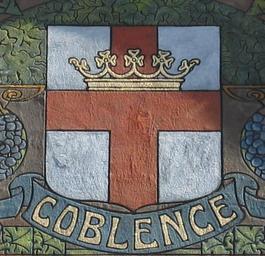 Keywords: Wappen von Koblenz am Palais du vin, sgraffito Bruessel 1909.png Palais du vin Bruessel derivated work from File Palais du vin sgraffito -02 Coblence jpg Ssuag Coats of arms of Koblenz Koblenz_1909 crowns in heraldry Crosses gules Cross of Trier in heraldry Sgraffito of the Palais du vin |