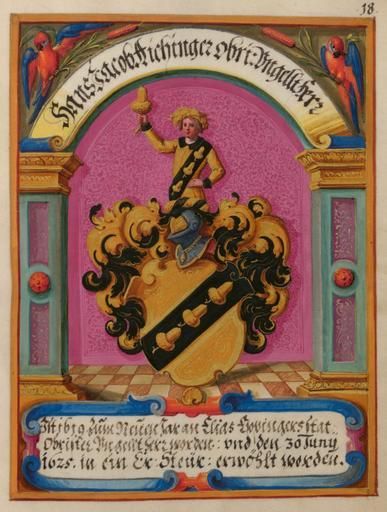 Keywords: Wappenbuch Ungeldamt Regensburg 018r.jpg Wappenbuch des Ungeldamtes Regensburg Stadtarchiv Ravensburg Wappen der Herren des Ungeldamtes Hans Jacob Aichinger http //gams uni-graz at/o rpb band12 after 1560 anonymous PD-old-100 Wappenbuch des Ungeldamtes Regensburg Coats of arms of Aichinger family |