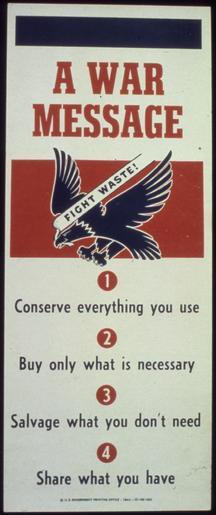 Keywords: "A war message - Fight waste" - NARA - 513742.tif Scope and content General notes 513742 Local identifier 44-PA-295 Office for Emergency Management Office of War Information Domestic Operations Branch Bureau of Special Services 03/09/1943 - 09/15/1945 Still Picture Records Section Special Media Archives Services Division NWCS-S National Archives at College Park 8601 Adelphi Road College Park MD 20740-6001 1941 - 1945 Record group Record Group 44 Records of the Office of Government Reports 1932 - 1947 Record group ARC 373 World War II Posters compiled 1942 - 1945 Series ARC 513498 File unit File unit ARC Variant control numbers NAIL Control Number NWDNS-44-PA-295 yes Other versions <gallery> File A_war_message_-_Fight_waste _-_NARA_-_513742 tif tif File A_war_message_-_Fight_waste _-_NARA_-_513742 jpg jpg </gallery> NARA-cooperation PD-USGov Wartime economy propaganda World War II posters from the United States NARA TIF images with categorized JPGs Waste Sharing Eagles in art |
