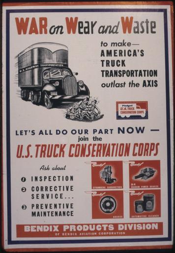 | Keywords: War on wear and waste. U.S. truck conservation corps - NARA - 535401.jpg Scope and content General notes 535401 Local identifier 179-WP-1551 Office for Emergency Management War Production Board 01/1942 - 11/03/1945 Still Picture Records Section Special Media Archives Services Division NWCS-S National Archives at College Park 8601 Adelphi Road College Park MD 20740-6001 other date circa 1942 1943 Record group Record Group 179 Records of the War Production Board 1918 - 1947 Record group ARC 508 War Production Board compiled 1942 - 1943 Series ARC 533858 File unit File unit ARC Variant control numbers NAIL Control Number NWDNS-179-WP-1551 Other versions <gallery> File War_on_wear_and_waste _U S _truck_conservation_corps_-_NARA_-_535401 tif tif File War_on_wear_and_waste _U S _truck_conservation_corps_-_NARA_-_535401 jpg jpg </gallery> NARA-cooperation PD-USGov World War II posters from the United States |