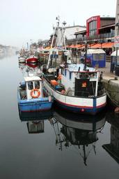 Keywords: warnemünde ship old power water port boot fishing boat fischer fog