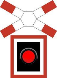 Keywords: Warnkreuz mit einem roten Warnlicht für unbeschrankten eingleisigen Bahnübergang.svg de Warnkreuz mit einem roten Warnlicht für unbeschrankten eingleisigen Bahnübergang Das rote Licht blinkte schnell und bedeutete Halt Der à bergang ist für den Straßenverkehr gesperrt Die rot-weiße Umrandung am Signalschirm sowie die Arme des Warnkreuzes waren mit runden Reflektoren besetzt Quelle DIN A3-Aushang der Reichsbahndirektion Schwerin Warnlichter an unbeschrankten Eisenbahnübergängen vom Juli 1936 own gezeichnet von Mediatus Mediatus 11 August 2013 Herstellungsdatum v Cc-zero Diagrams of railway road signs of Germany 1934 set Diagrams of railway road signs of Germany 1938 set Diagrams of railway road signs of Germany 1945 set Diagrams of railway road signs of Germany 1953 set SVG road signs in Germany |