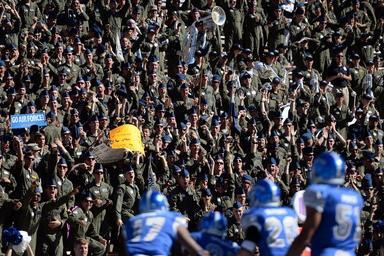| Keywords: Warrior Games athletes honored at Navy-Air Force football gme 141004-D-DB155-021.jpg en Air Force cadets react to an Air Force touchdown in a game against Navy at the Air Force Academy in Colorado Springs Colo Oct 4 2014 Air Force won the game which honored the athletes in the 2014 Warrior Games DoD News photo by EJ Hersom 2014-10-04 EJ Hersom https //www dvidshub net/image/1598059 141004-D-DB155-021 2014-10-04 22 27 COLORADO SPRINGS CO US PD-USGov 2014 Warrior Games Images from DoD uploaded by Fæ |