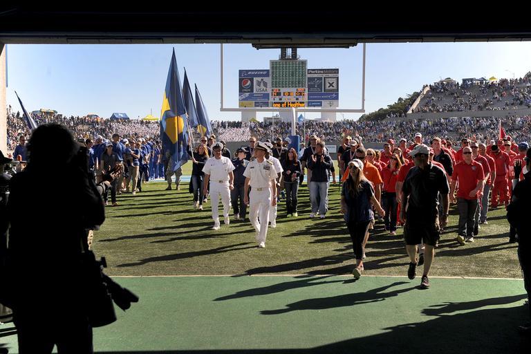 Keywords: Warrior Games athletes honored at Navy-Air Force football game 141004-D-DB155-035.jpg en Navy and Marine Corps 2014 Warrior Game teams exit Air Force Academy ™s stadium after being honored with a halftime presentation during the Air Force against Navy game in Colorado Springs Colo Oct 4 2014 DoD News photo by EJ Hersom 2014-10-04 EJ Hersom https //www dvidshub net/image/1598085 141004-D-DB155-035 2014-10-04 22 28 COLORADO SPRINGS CO US PD-USGov 2014 Warrior Games Images from DoD uploaded by Fæ |