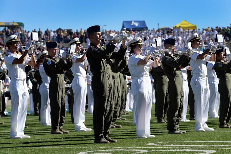 | Keywords: Warrior Games athletes honored at Navy-Air Force football game 141004-D-DB155-026.jpg en Navy and Air Force Bands play at halftime of the Navy against Air Force football game at the Air Force Academy in Colorado Springs Colo Oct 4 2014 Air Force won the game which honored the athletes in the 2014 Warrior Games with a halftime presentation DoD News photo by EJ Hersom 2014-10-04 EJ Hersom https //www dvidshub net/image/1598070 141004-D-DB155-026 2014-10-04 22 27 COLORADO SPRINGS CO US PD-USGov 2014 Warrior Games Images from DoD uploaded by Fæ |