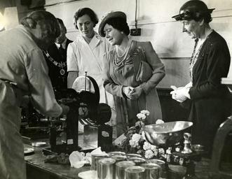 Keywords: the women's library thewomenslibrary hires 5FWI/B/2/2/02/026 Photograph, printed paper, monochrome, HM Queen Elizabeth watching demonstration of canning unit presented at a cost of £300 by American Country women through the British War Relief Society of America, observed, left, by Miss Doris Cumming and, right, Mrs M Gowring, Chair Berkshire Federation of Women's Institutes. 5FWI/B/2/2/02/026 Photograph, printed paper, monochrome, HM Queen Elizabeth watching demonstration of canning unit presented at a cost of £300 by American Country women through the British War Relief Society of America, observed, left, by Miss Doris Cumming and, right, Mrs M Gowring, Chair Berkshire Federation of Women's Institutes. |